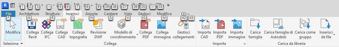 Se in una scheda della barra multifunzione è presente un gruppo espanso contenente ulteriori strumenti, con le indicazioni del tasto è possibile visualizzare il gruppo e le indicazioni del tasto per tali strumenti.
