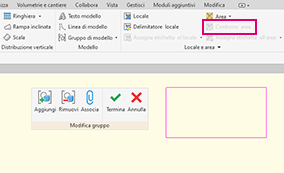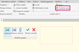Lo strumento Aggiungi > Linea di contorno area è stato attivato nell'editor Gruppo di modello per modificare il contorno area.