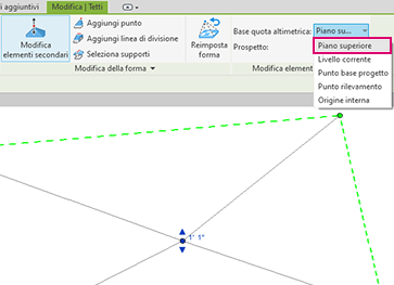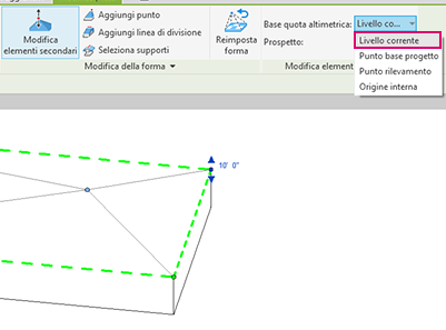 La funzione Piano superiore è stata aggiunta come opzione di Base quota altimetrica durante la modifica della forma.