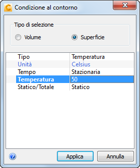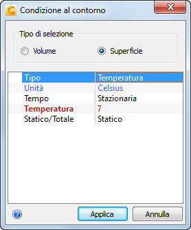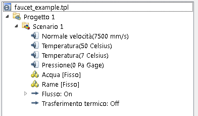 Il modello contiene una condizione al contorno di velocità, due di temperatura e una di pressione.