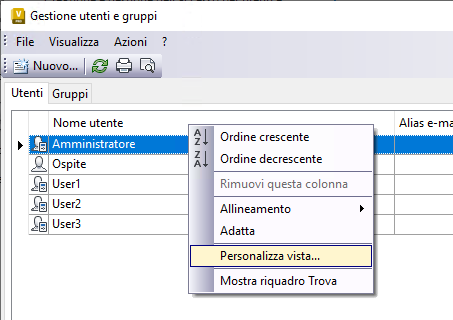 È possibile personalizzare la visualizzazione aggiungendo o rimuovendo campi colonna. Personalizzando la vista, la gestione degli utenti risulta più adeguata alle esigenze specifiche.