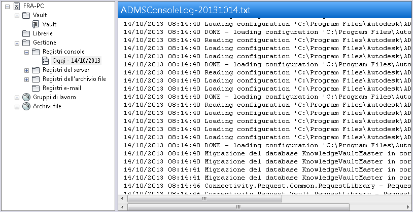 Visualizzare registri della console, del server, dell'archivio dei file ed e-mail in ADMS Console.