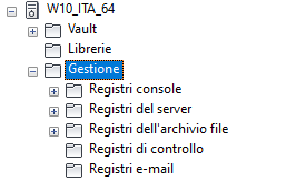 È possibile accedere ai file di registro della console, del server, dell'archivio dei file, di controllo e delle e-mail nella cartella Gestione.