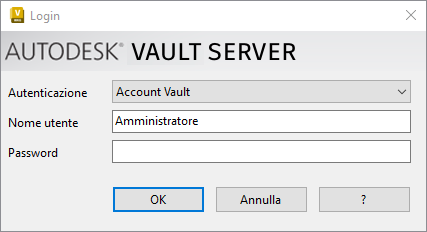 - Account Vault: sono necessari un nome utente e una password specifici per Vault.