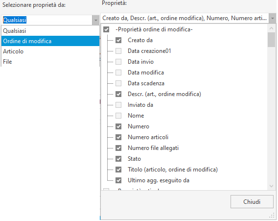 Un elenco di valori e nomi della proprietà Ordine di modifica visualizzati in più righe. |