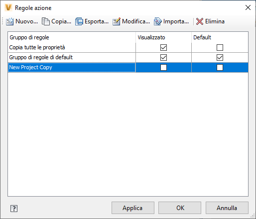 Selezionare una regola esistente, quindi fare clic su Copia per crearne una copia. La copia ha tutte le medesime condizioni e impostazioni di funzionamento dell'originale. |