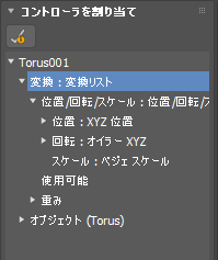 [アニメーション](Animation)メニューを使用してコントローラを割り当てる場合は、既定でリスト コントローラが自動的に割り当てられ、選択したコントローラがリストの先頭に表示されます。この動作は、[モーション](Motion)パネルやトラック ビューでコントローラを割り当てる場合(指定されたコントローラしか割り当てられない)とは異なります。