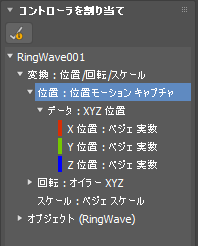 [コントローラを割り当て](Assign Controller)ロールアウトで、作成したボックス オブジェクトの位置トラックをリスト ボックスから選択し、