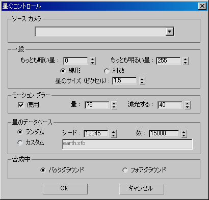 - チェックマークを付けると、スターフィールドでモーション ブラーを使用します。チェックマークを消すと、星はカメラの動きに関係なくドットで表されます。