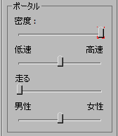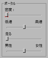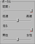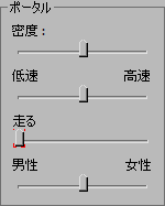 [ポータル](Portals)領域で、[密度](Density)スライダを左端までドラッグします。 スライダに、この設定にアニメーション キーが含まれることを示す、赤い括弧が表示されます。