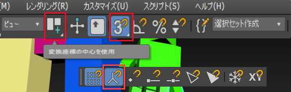 - 指全体(すべての指関節)をダブルクリックして選択します。[中心を使用](Use Center)フライアウト ツールバー ボタンの[変換座標の中心を使用](Use Transform Coordinate Center)を使用し、[スナップ切り替え](Snap Toggle)を有効(S)にして[スナップ](Snaps)ツールバーの[基点にスナップ](Snap to Pivot Point)を使用して、ダミーのピボット ポイントに指を合わせます。