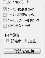 [設定モード](SetupMode)領域で[ローカル位置をロック](Lock Local Position)をオンにします。 この状態でボーンを移動しようとしても、位置がロックされているために何も起こりません。
