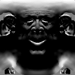 - 任意のポイントで編集可能ポリゴン オブジェクトのサーフェスである凹部または凸部がどのように表示されるかを示す、グレースケール イメージを生成します。サーフェスに凹部の多いほどピクセルが暗くなり、サーフェスに凸部が多いほどピクセルに白が追加されます。