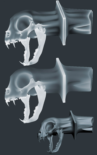 ポリゴン メッシュから作成したサブサーフェス マップ(異なるブラー値を確認できます)