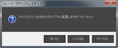 親を選択せずに、マップやサブマテリアルなどの下位ノードを選択した場合、3ds Max からライブラリに親も含めるかどうかを尋ねる次のメッセージが表示されます。