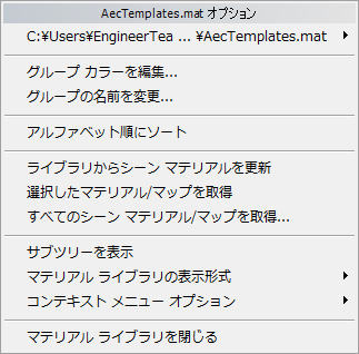 ライブラリ MAT ファイルを扱うためのサブメニューが表示されます。