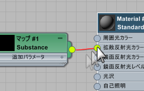 2. マテリアル/マップ ブラウザの[マップ](Maps)リストから、Substance マップを標準マテリアルの[拡散反射光カラー](Diffuse) の入力ソケットにドラッグします。