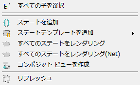これらのオプションは、階層内の「ステート セット」エントリを右クリックした場合にのみ表示されます。