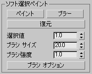 現在の設定を使用して、アクティブなオブジェクト上でソフト選択をペイントします。オブジェクト サーフェス上でマウスのカーソルをドラッグして、選択対象をペイントします。