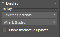[ブール演算](Boolean)モディファイヤの[表示](Display)ロールアウトには、ブール演算オペランドの表示を設定するコントロールがあります。