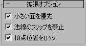 チェック マークを付けると、プロ オプティマイザーは頂点を移動しても面法線は反転されないと判断します。チェック マークが付いていない場合、こうした判断は行われません。片面のビューポート シェーディングで表示した場合や、片面のマテリアルでレンダリングされた場合、最適化のメッシュに穴が開いたように見える場合があります。既定値ではチェックマークが付いています。