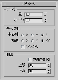 テーパの中心からの上限をワールド単位で設定します。これを超えると、ジオメトリに対するテーパ効果はなくなります。