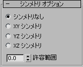 [シンメトリ オプション](Symmetry options)は、指定した平面の周りにあるオブジェクトのシンメトリを保持します。