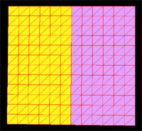 赤い部分がフリーズされたポイント。各ポイントのカラーは隣接するポイントとは異なるため、ほぼすべての面がフリーズされ、最適化されていない
