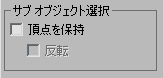 これらのオプションは、プロ オプティマイザーによる頂点サブオブジェクト選択の処理方法をコントロールします。プロ オプティマイザーではサブオブジェクト選択を作成できませんが、オブジェクトから頂点選択を取得したり、スタック上の頂点選択以下を修正することが可能です。