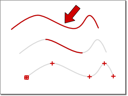 シェイプの正方向の Z 軸をパスの接線に配列しても、必要とする結果が生じないことが時々あります。シェイプを取得する間に、Ctrl を押して、シェイプの方位を反転させることができます。Ctrl を押すとシェイプを配列させ、シェイプの負方向の Z 軸がパスの接線に配列されます。