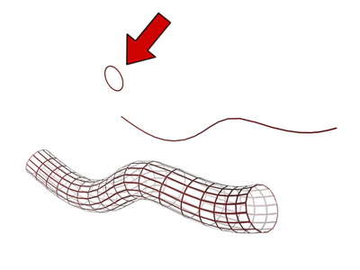 円がパスに沿ってロフトされ、チューブ状のシェイプが作成されます。[シェイプを取得](Get Shape)はコンタ スプラインを選択します。