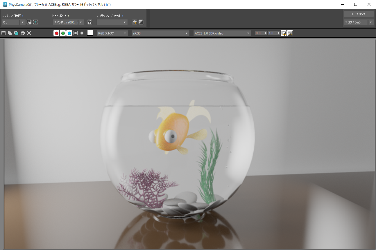 [レンダリング フレーム ウィンドウ](Rendered Frame Window)はレンダリング出力を表示します。