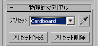 - 新規物理的マテリアル プリセットは[マルチオブジェクト エディタ](Multi-Object Editor)パネルからのみ作成できます。モディファイヤのインタフェースから作成することはできません。