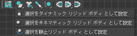 [選択をダイナミック リジッド ボディとして設定](Set Selected as Dynamic Rigid Body)の[選択をダイナミック リジット ボディとして設定](Set Selected As Dynamic Rigid Body)でも使用できます。