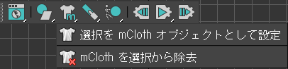 これらのコマンドを使用して、mCloth モディファイヤをオブジェクトに適用したり、オブジェクトからモディファイヤを除去します。