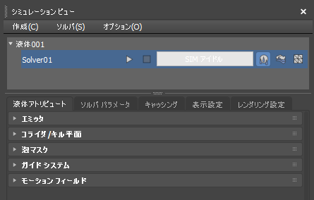 - このパネルを使用して個々のソルバ パラメータを調整し、シミュレーションに関連付けられたシーン オブジェクトを表示します。