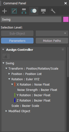 [モーション](Motion)パネルの[コントローラを割り当て](Assign Controller)ツリー ビュー