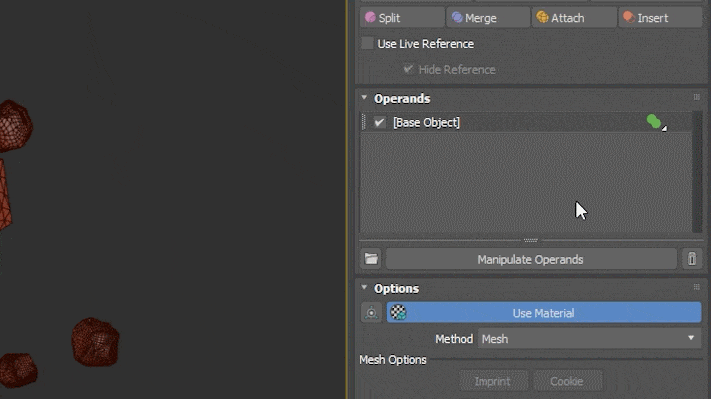 OpenVDB 方法は、ブール演算を計算する別の方法です。隙間のないジオメトリからトポロジに依存しない結果を生成できます。[ブール演算](Boolean)モディファイヤの[オプション](Options)ロールアウトで OpenVDB を選択します。