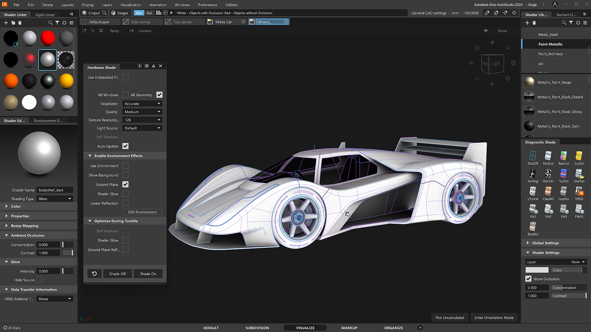 アンビエント オクルージョンによりシャドウが生成され、ハードウェア シェーディング モデルに定義とコントラスト領域が追加されます。