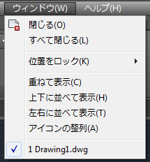 次の例では、メニュー項目[1 Drawing.dwg]にチェック マークが表示されます。