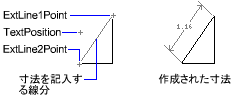 平行寸法では、寸法線は各寸法補助線の起点に平行です。寸法補助線の原点は、ExtLine1Point と ExtLine2Point プロパティを使用して指定します。