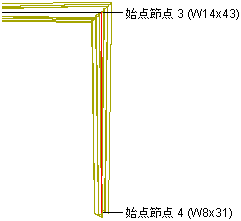 - [始点形状]領域の[名前]リストから、[W14X43]を選択します。