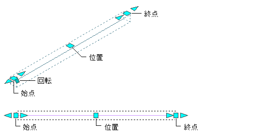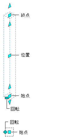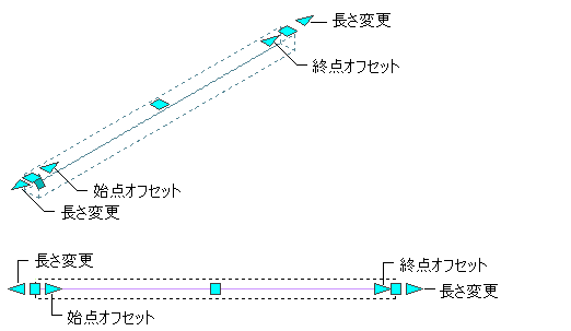 直線状の柱の長さ、始点オフセット、終点オフセットに対するグリップ