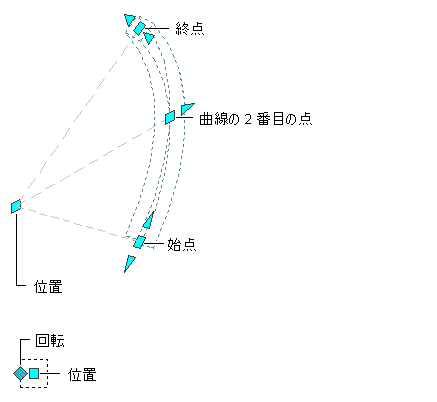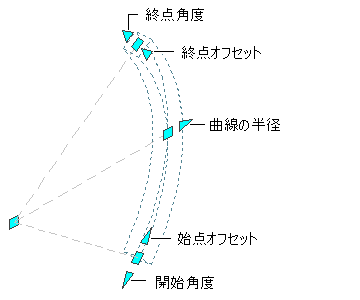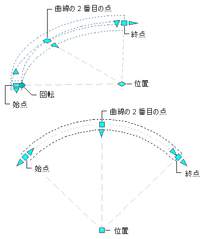 曲線状の柱の始点角度、終点角度、半径、始点オフセット、終点オフセットに対するグリップ
