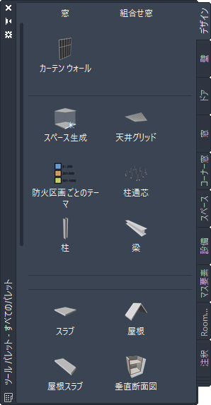 天井グリッド ツールを含むツール パレット