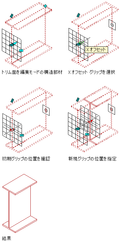 トリム面を部材の押し出し軸に沿って X 軸方向にオフセットするには [オフセット]に X 値を入力します。