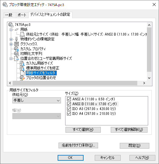 [デバイスとドキュメントの設定]タブ([プロッタ環境設定エディタ])