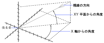2 番目の角度は、XY 平面からの上向きまたは下向きの角度で指定します。