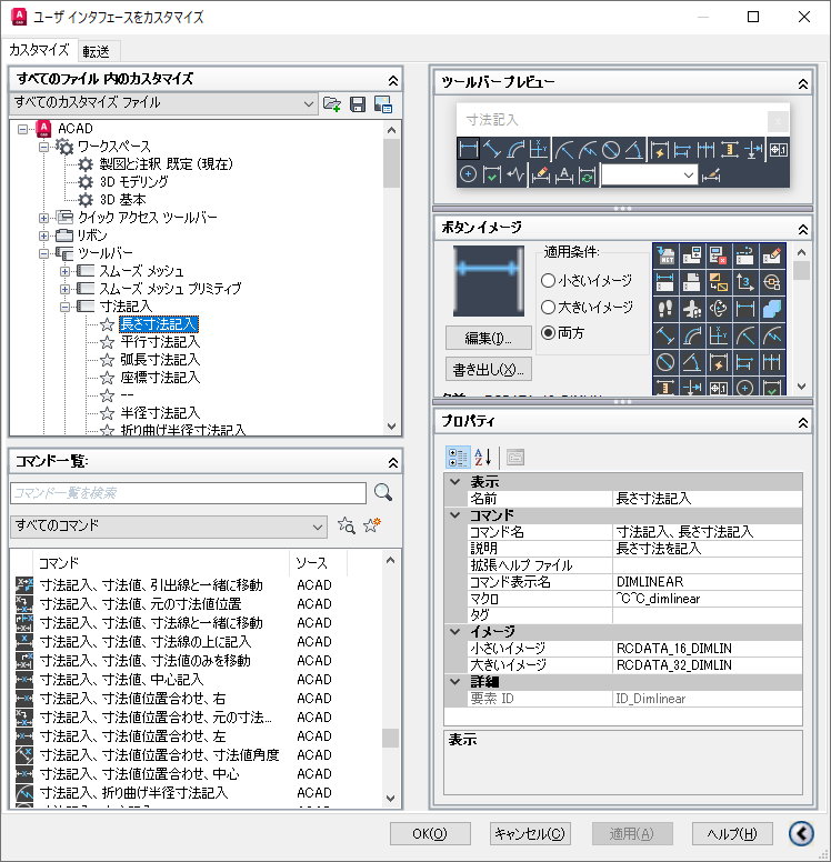 [大きいイメージ]: ツールバーまたはリボン パネルにコマンドを追加するときに使用する大きいイメージのファイルを指定します。