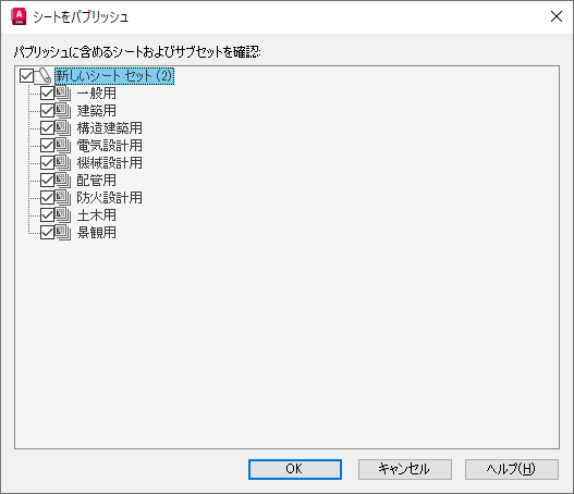SHEETSET[シート セット マネージャ] (コマンド) 検索: [シート一覧]タブ > シート名を右クリック > [パブリッシュ] > [サブセットおよびシート パブリッシュの設定を編集]